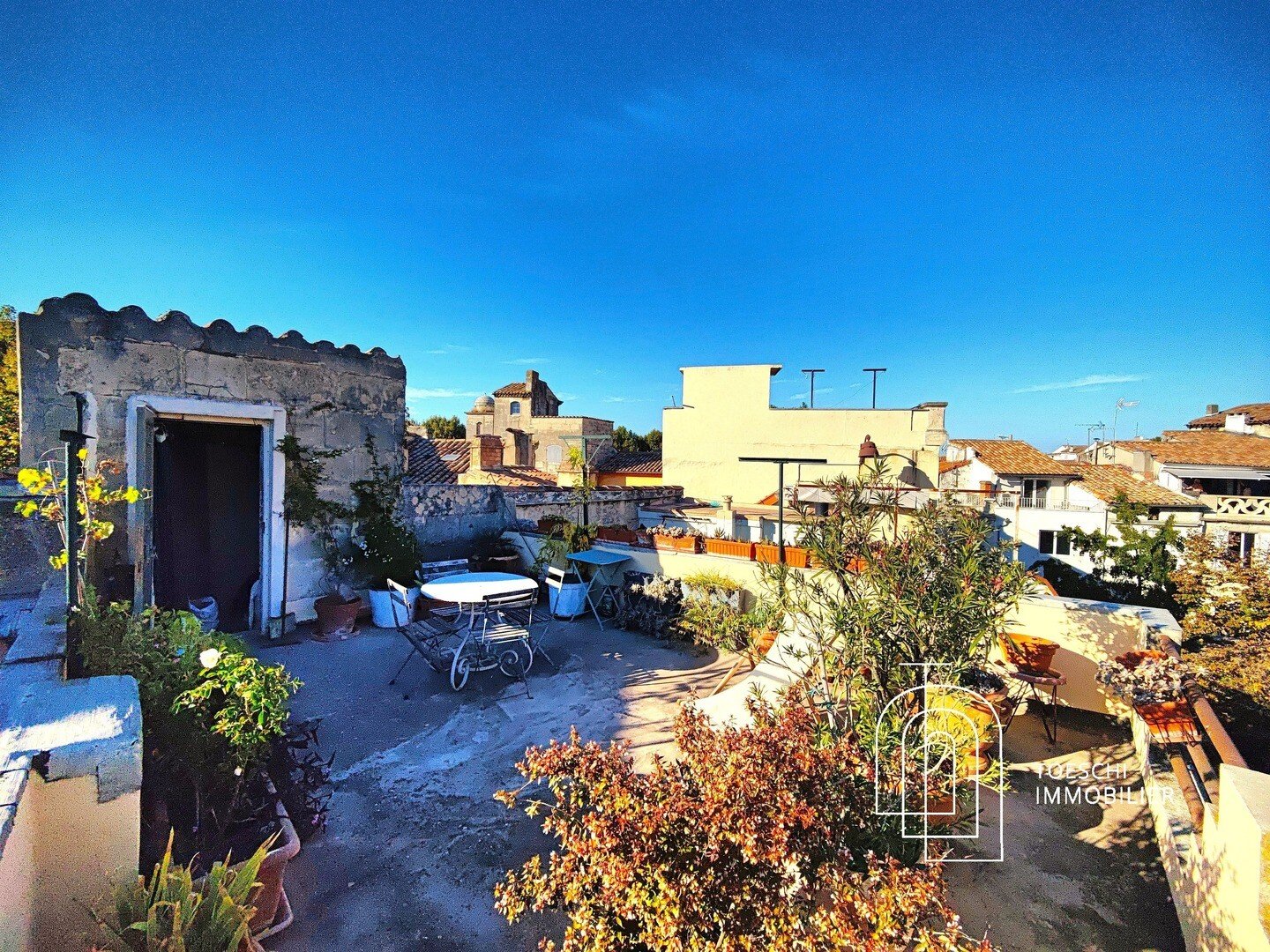 Enfin, au dernier niveau, une superbe terrasse offre une vue dégagée sur les toits d’Arles, idéale pour des moments de détente.